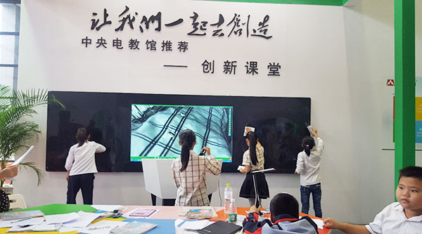 聚集教學(xué)中的“微課錄制、互動課堂、老師備課、微課平臺”四大功能于一身,引起觀展人員極大的興趣。