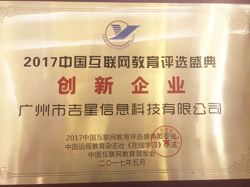 熱烈祝賀吉星科技榮獲“2017中國(guó)互聯(lián)網(wǎng)教育創(chuàng)新企業(yè)”