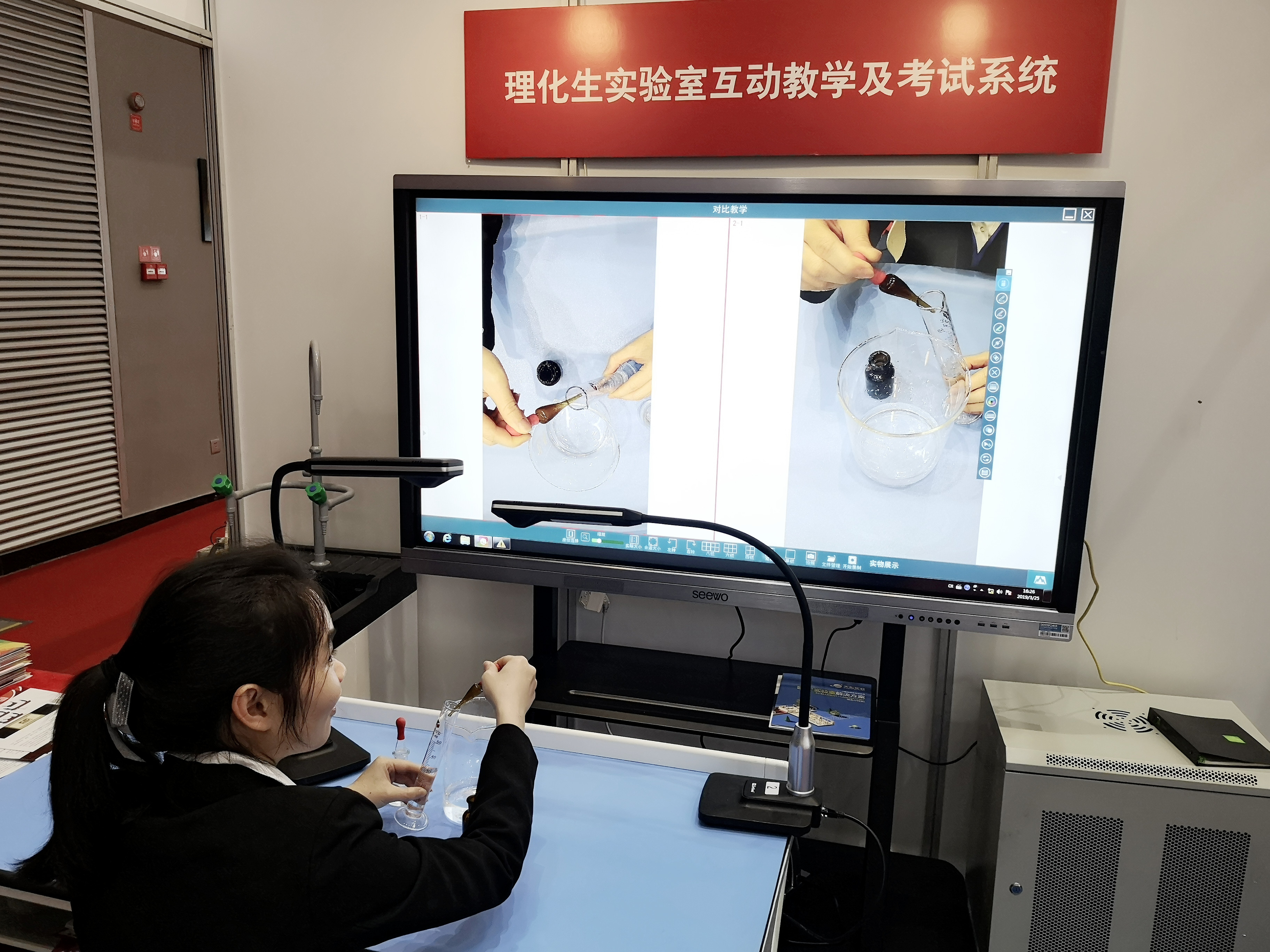 本次展會吉星推出了智慧實驗室互動教學及考試系統,隨著中高考改革的深入推進,目前全國已有多個省份將實驗操作考試納入了中考考試范疇,高考中對實驗操作方面的知識考查點也在逐年增加。吉星通過軟硬件結合的技術方案,解決了理化生實驗操作類學科的教學、考試、素材收集、評分等信息化工作。(插視頻)