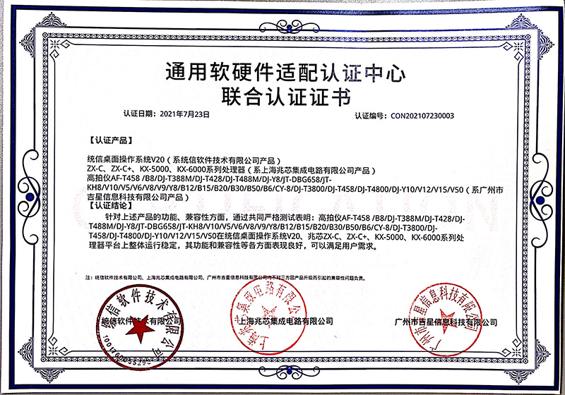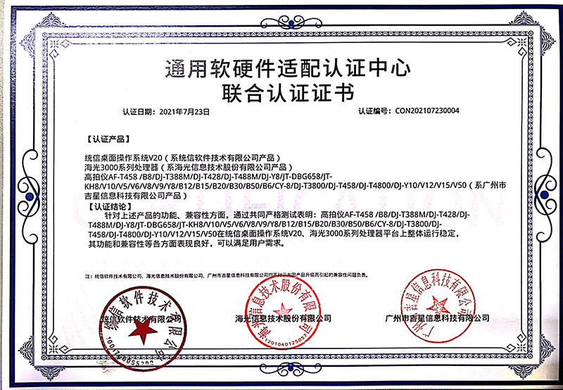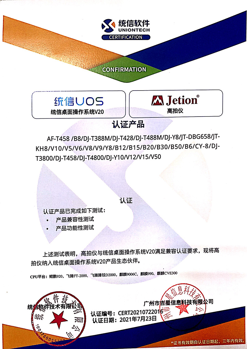 日前,由吉星自主研發的高拍儀與統信UOS桌面操作系統V20完成產品兼容性測試以及產品功能性測試。