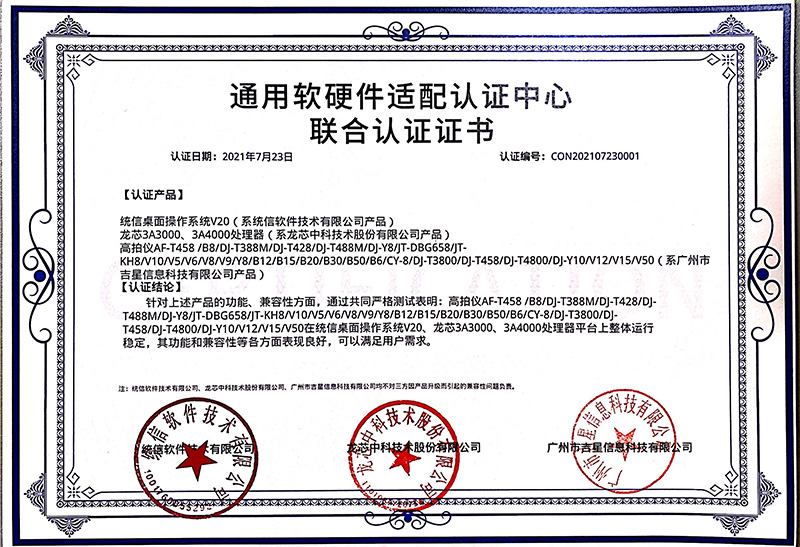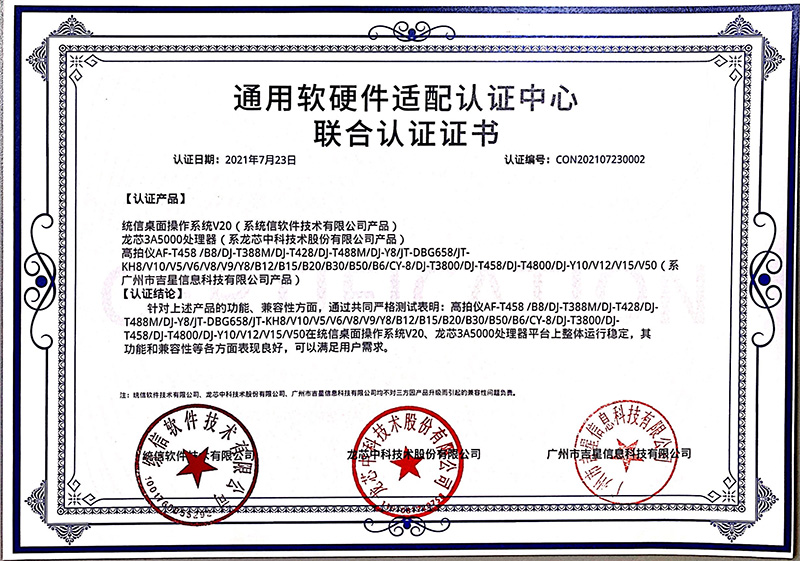 測試結果表明高拍儀滿足兼容認證要求,可穩定高效運行于UOS操作系統中,兩者穩定運行于龍芯、兆芯、海光的國產CPU平臺,兼容性良好、穩定運行、性能卓越,能夠滿足用戶多樣化需求。